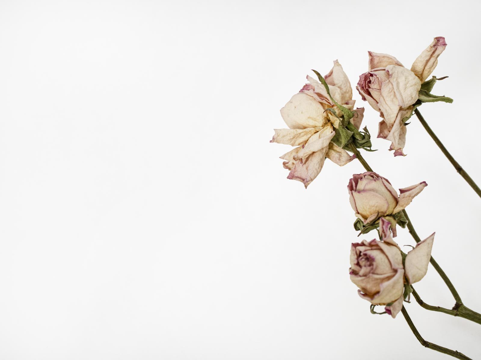 Wallpaper Dried pink roses on white background