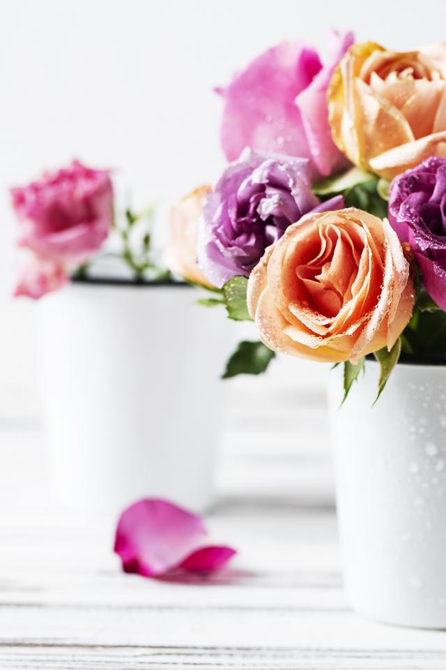 Wallpaper Bouquet of roses in drops of water on a white background