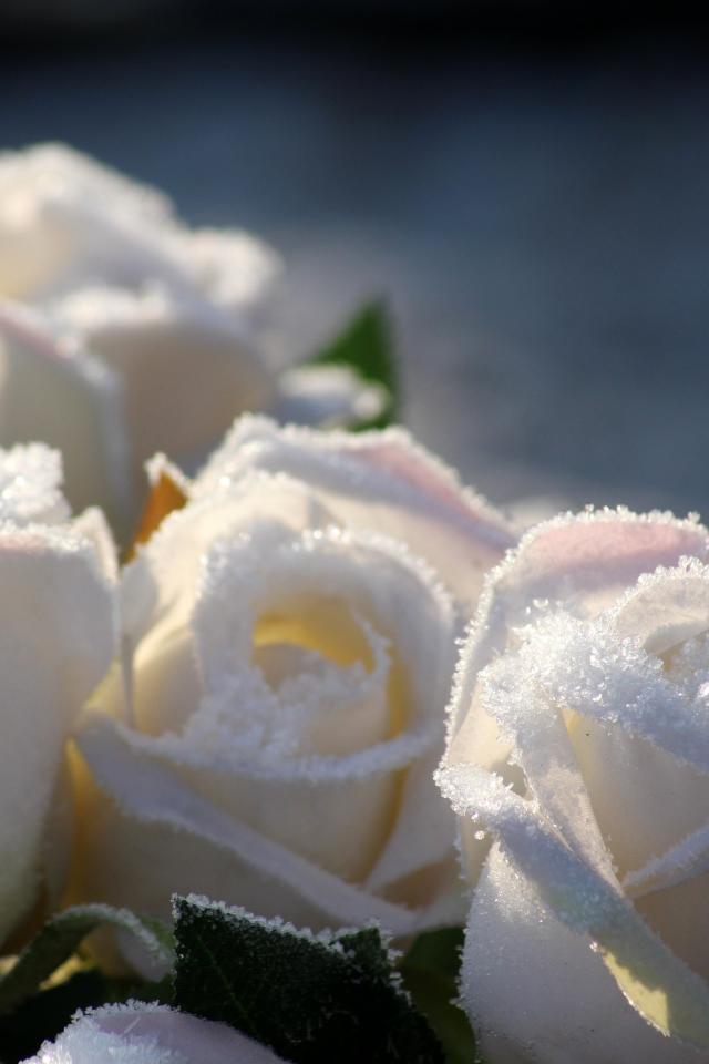 Wallpaper White rose flowers in hoarfrost