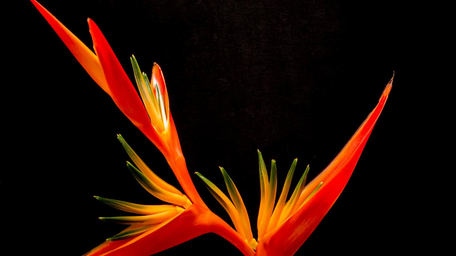Wallpaper Orange cannes flower on black background