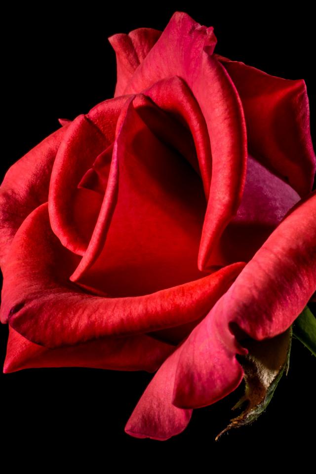 Wallpaper Red rose with delicate petals on a black background