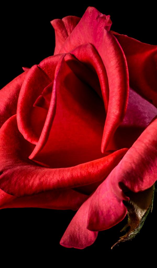 Wallpaper Red rose with delicate petals on a black background