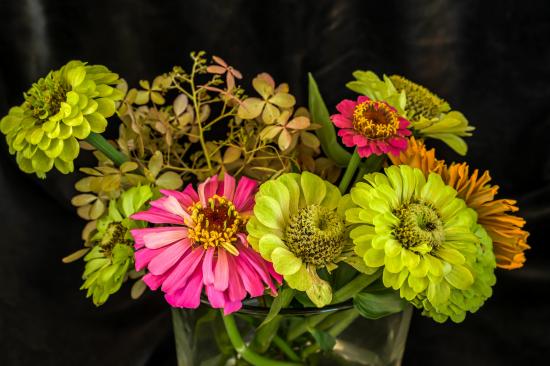 Wallpaper Bouquet of colorful zinnia flowers in a vase