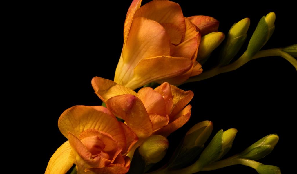 Wallpaper Four orange chrysanthemum flowers on a black background
