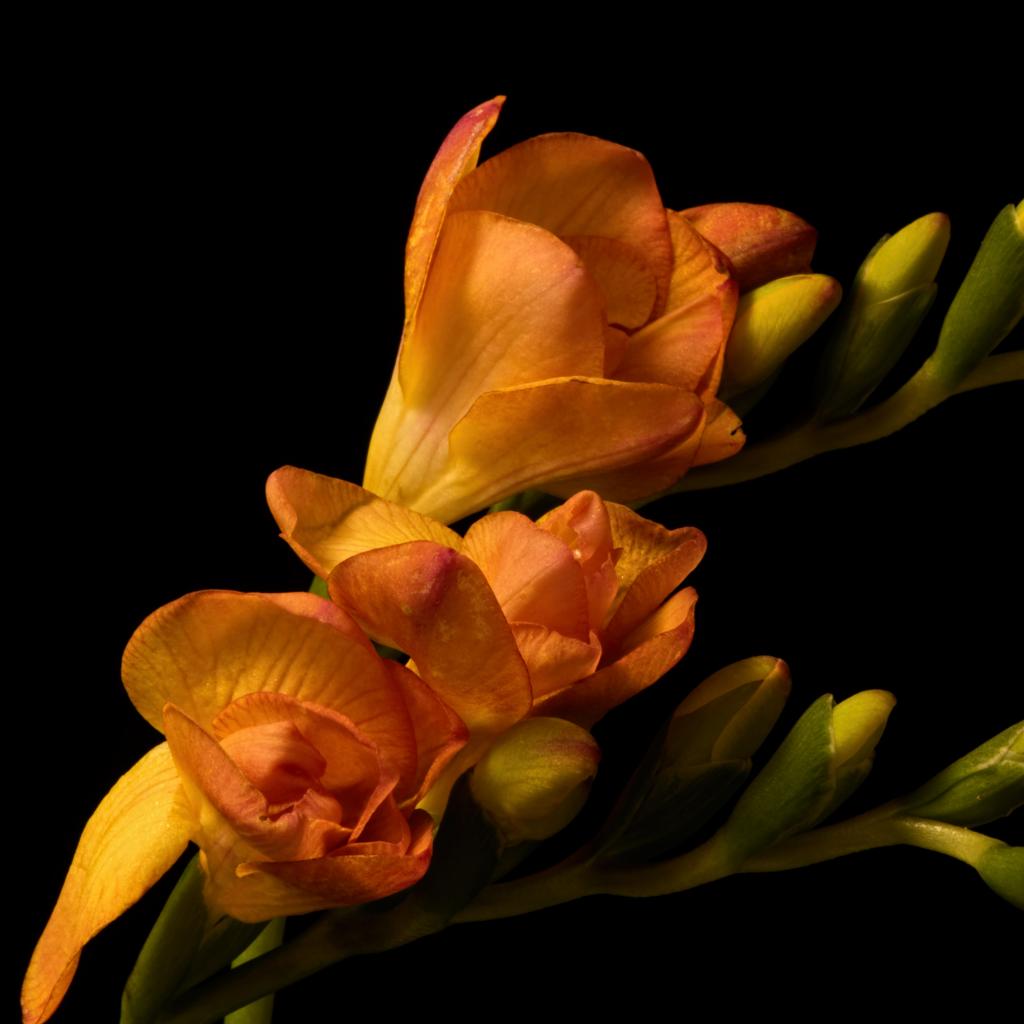 Wallpaper Four orange chrysanthemum flowers on a black background