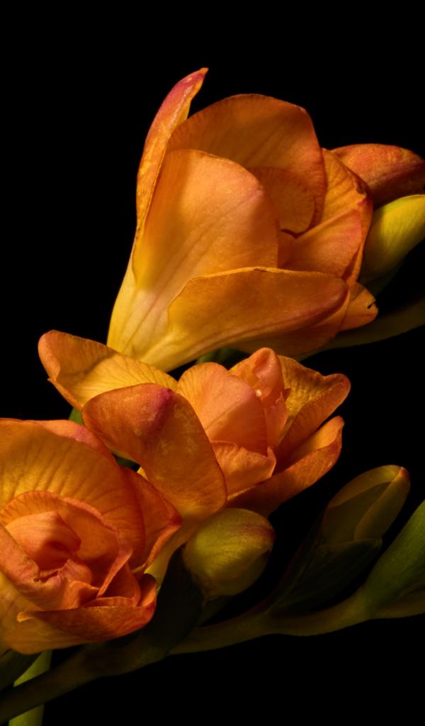 Wallpaper Four orange chrysanthemum flowers on a black background