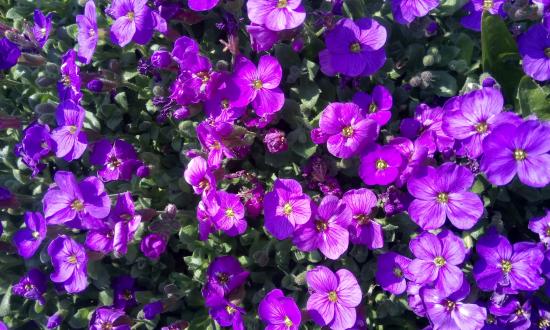 Wallpaper Small lilac Aubrieta flowers in the sun