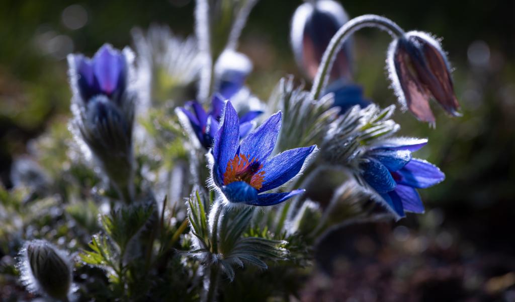 Wallpaper Blue flowers lumbago with buds in the sun