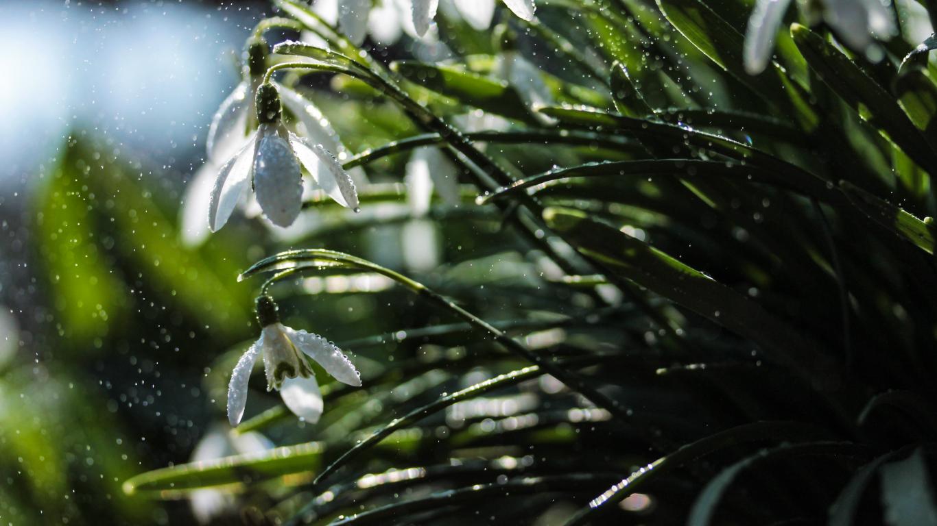 Wallpaper White snowdrops in the rain