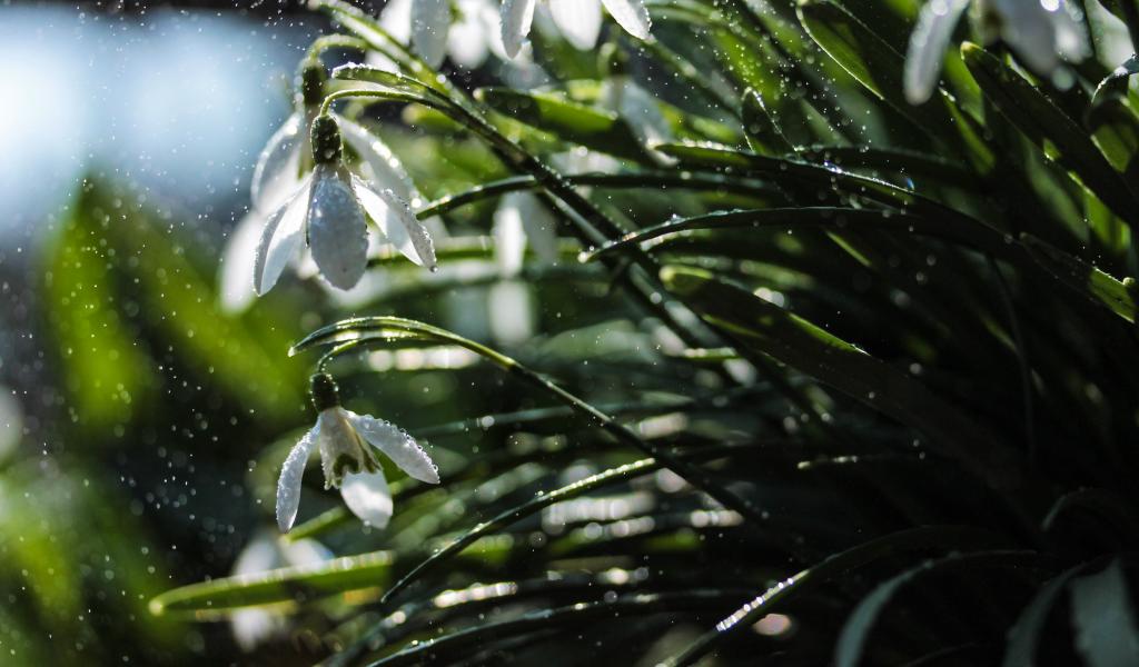 Wallpaper White snowdrops in the rain