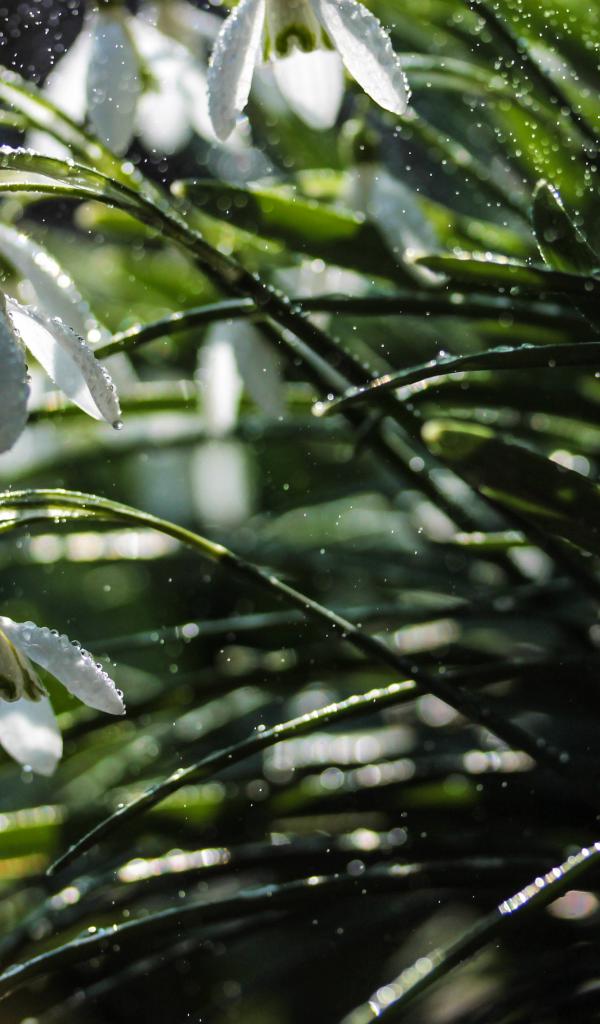 Wallpaper White snowdrops in the rain