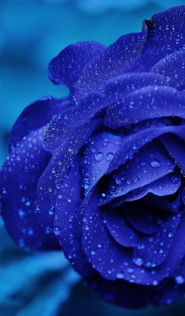 Wallpaper Blue rose in drops of water on the table