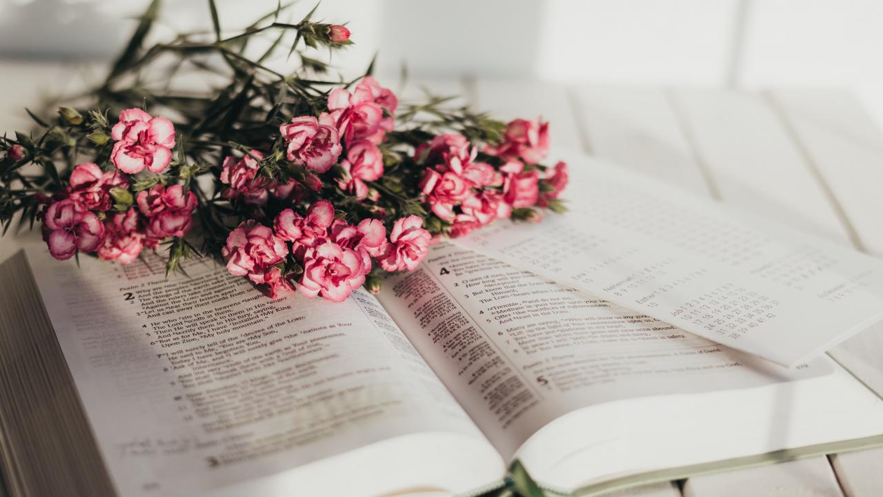 Wallpaper Bouquet of pink carnation flowers lie on a book