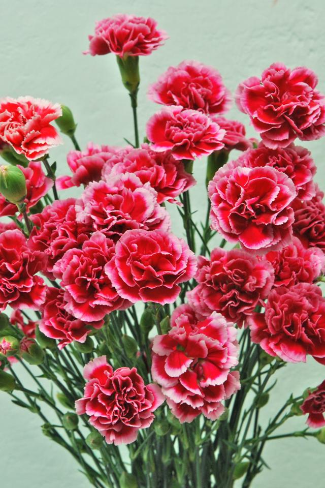Wallpaper Bouquet of pink carnation flowers on a gray background