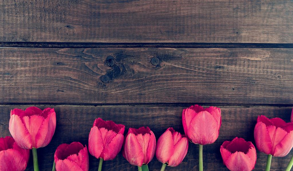 Wallpaper Pink tulip flowers close-up on a spring flowerbed
