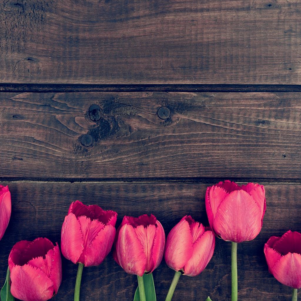 » Wallpaper Pink tulip flowers on wooden table