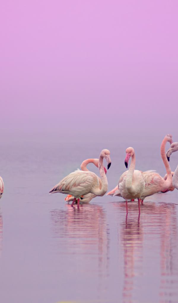 Wallpaper Flamingos in water on a pink background