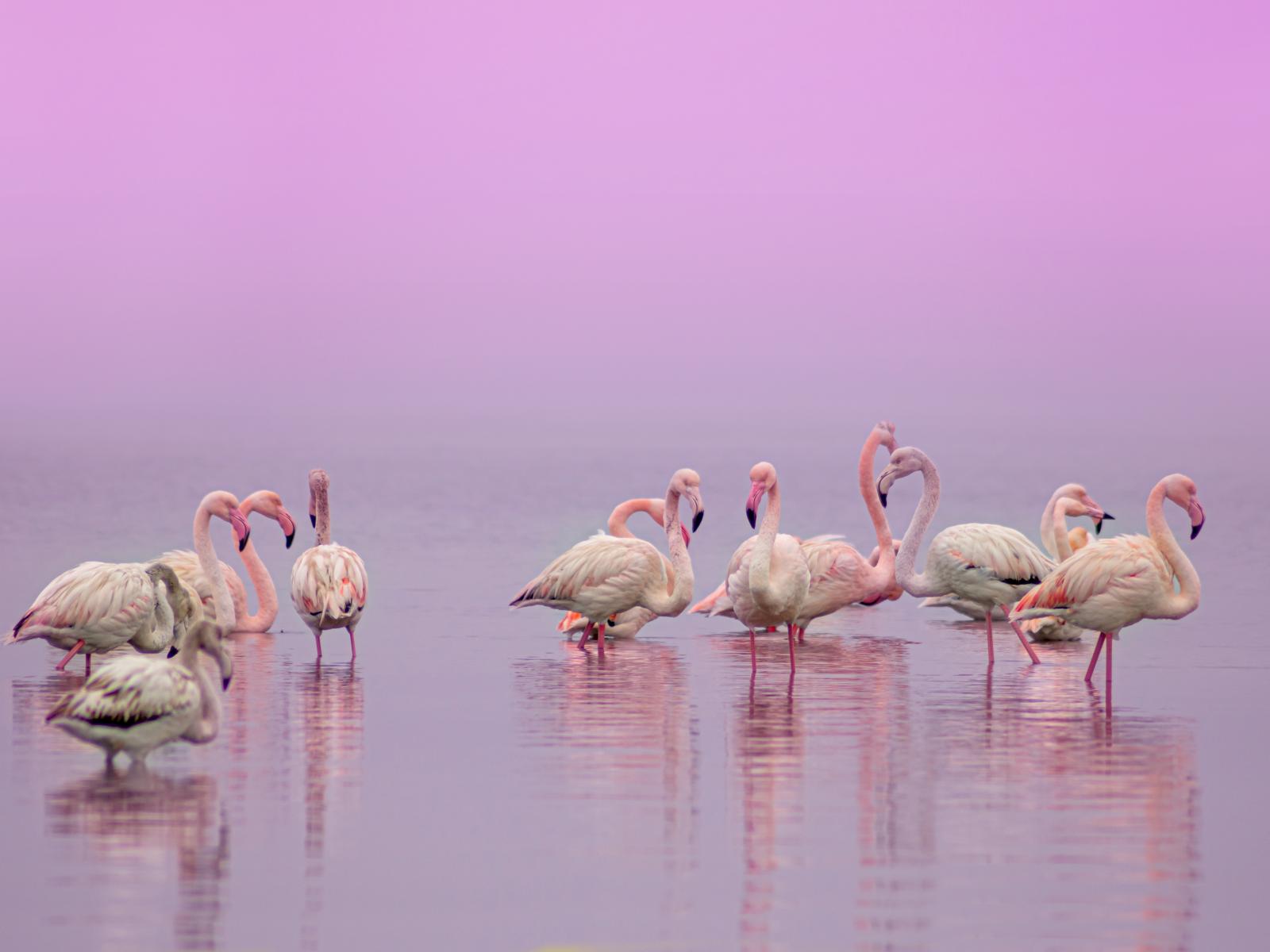 Wallpaper Flamingos in water on a pink background