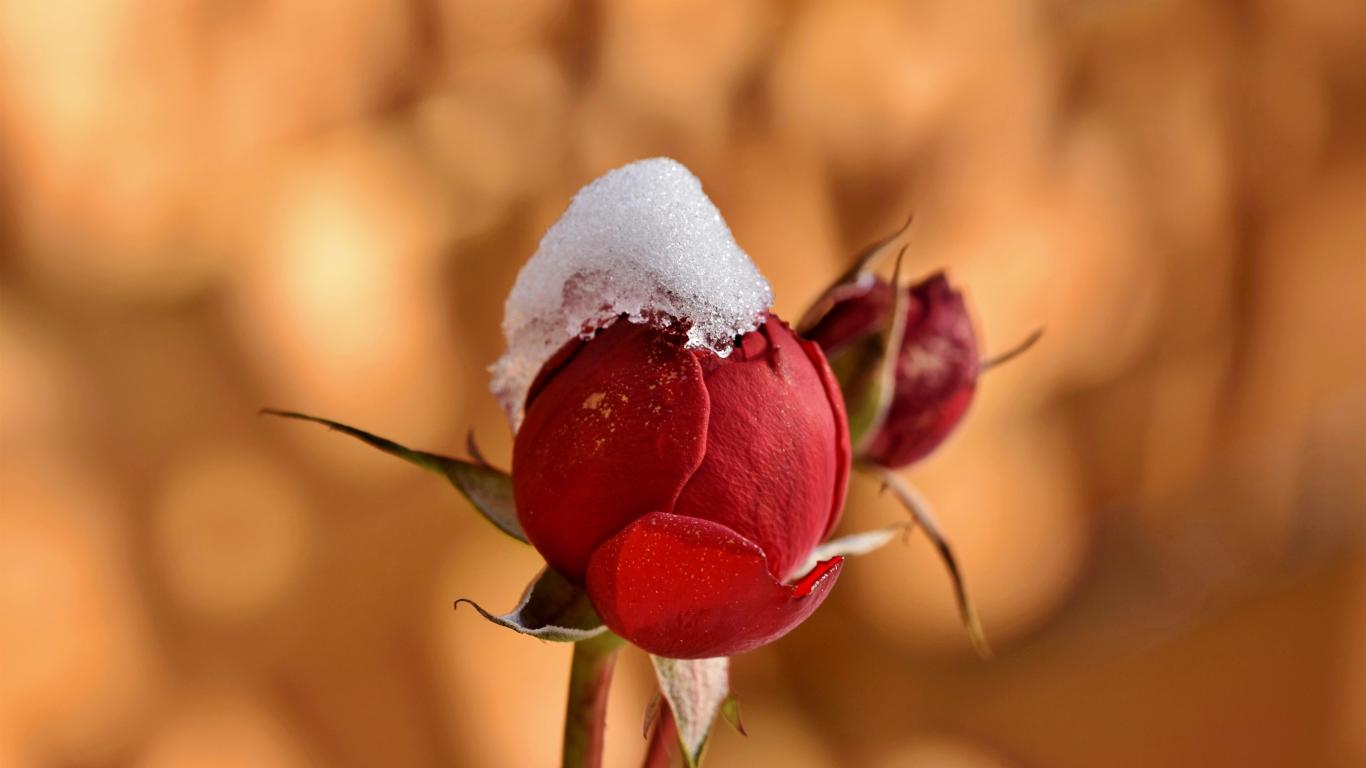 Wallpaper Rosebud in the snow close up