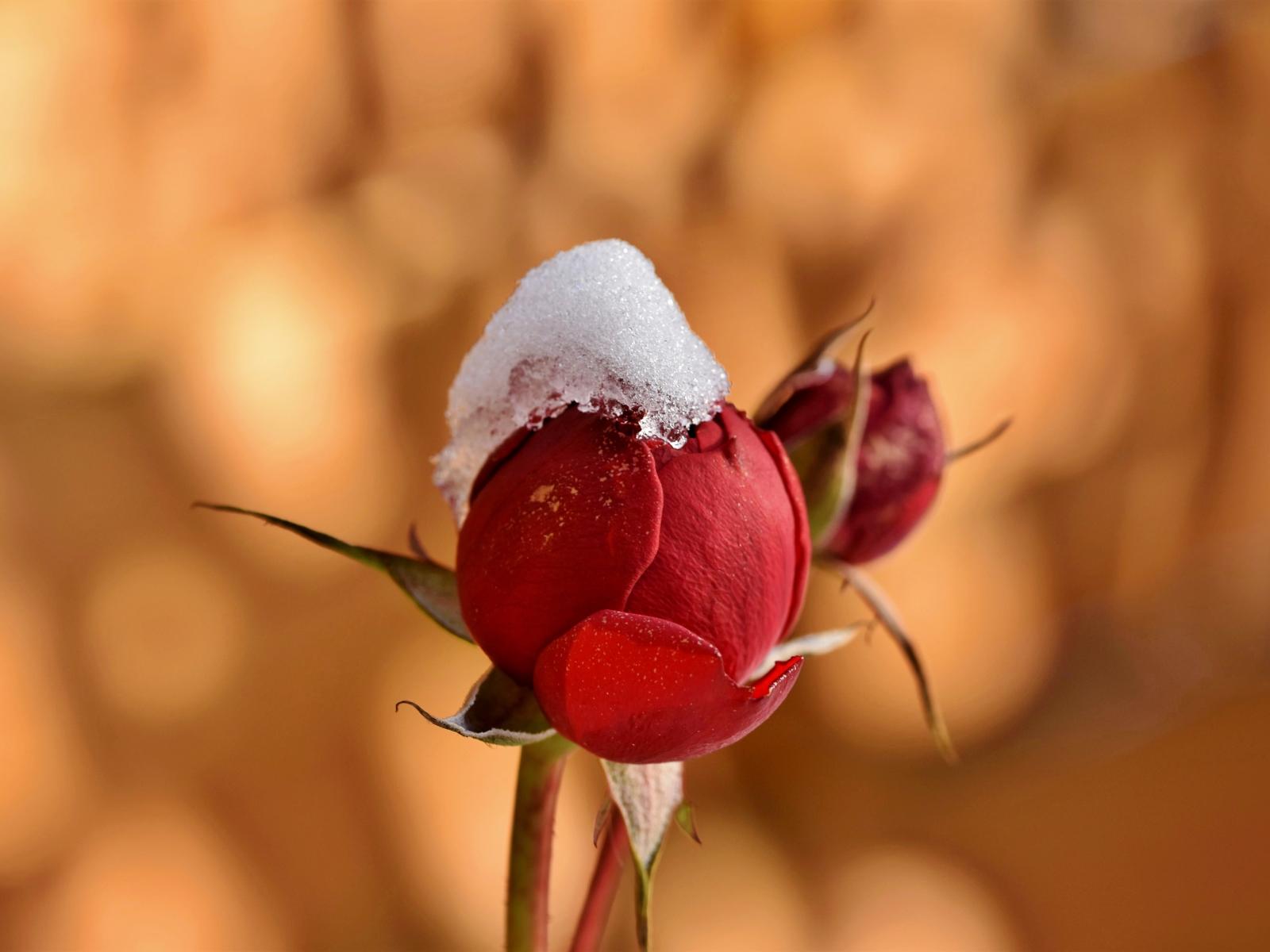Wallpaper Rosebud in the snow close up