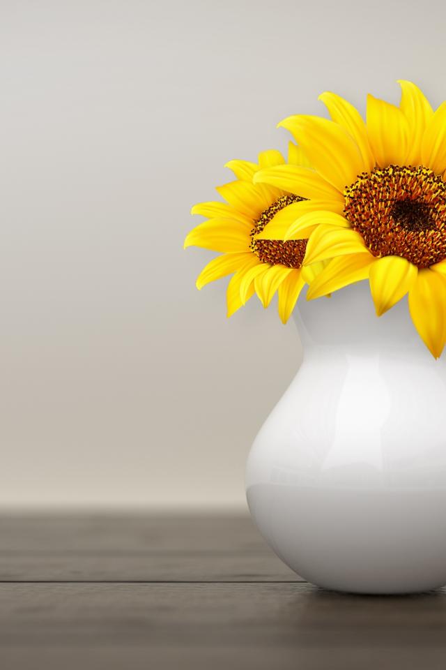 Wallpaper Two sunflower flowers in a white vase on a wall background