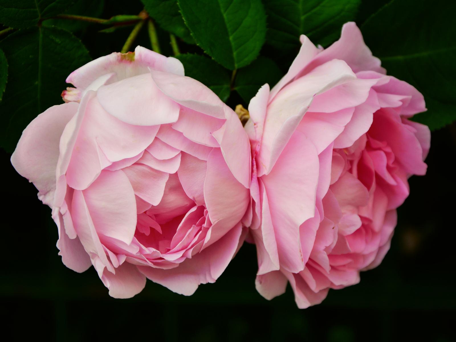 » Wallpaper Two pink rose flowers close up