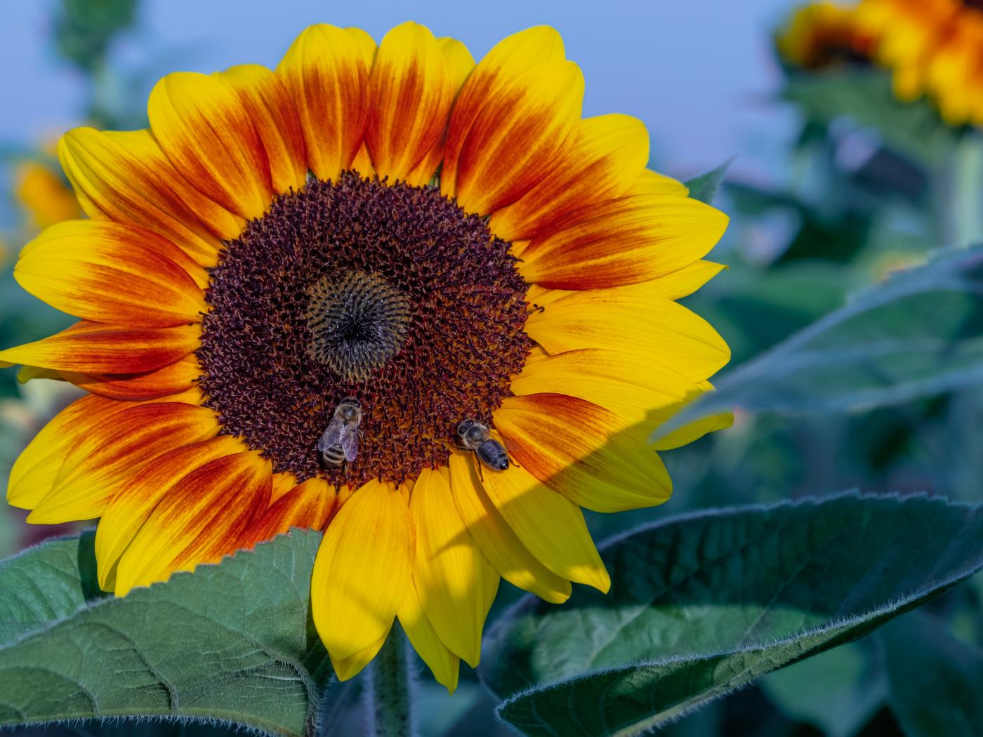 Wallpaper Big beautiful sunflower flower with bees