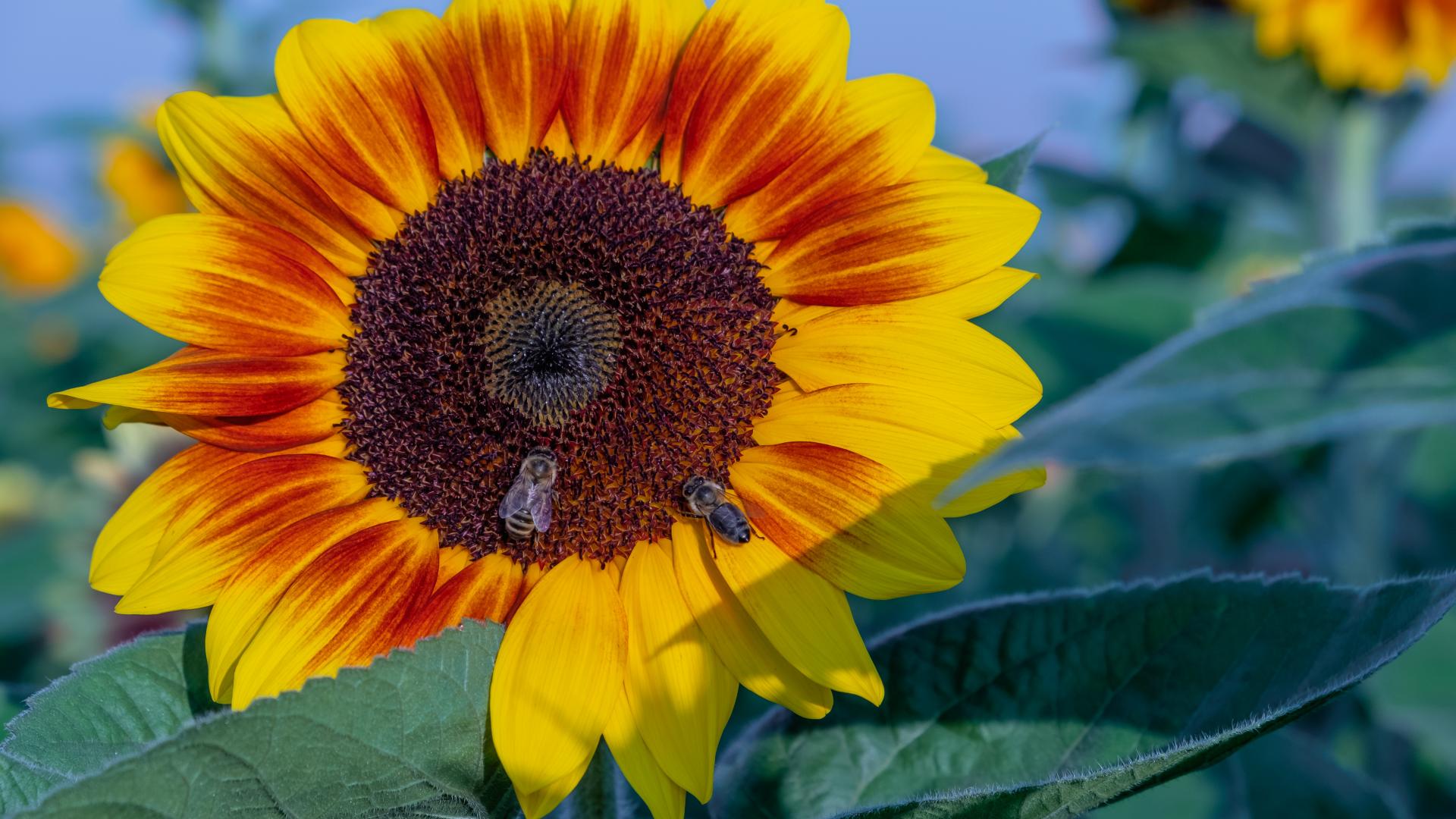 Wallpaper Big beautiful sunflower flower with bees