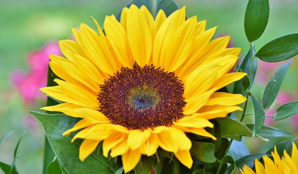 Wallpaper Yellow sunflower flower in green leaves close up