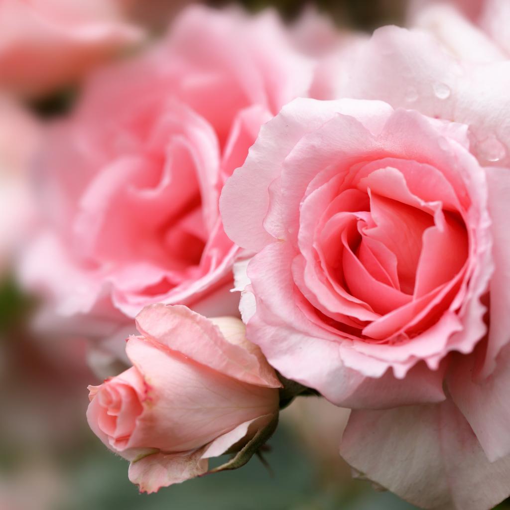Wallpaper Large pink rose with buds on a flower bed