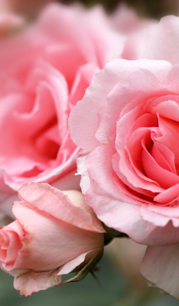 Wallpaper Large pink rose with buds on a flower bed
