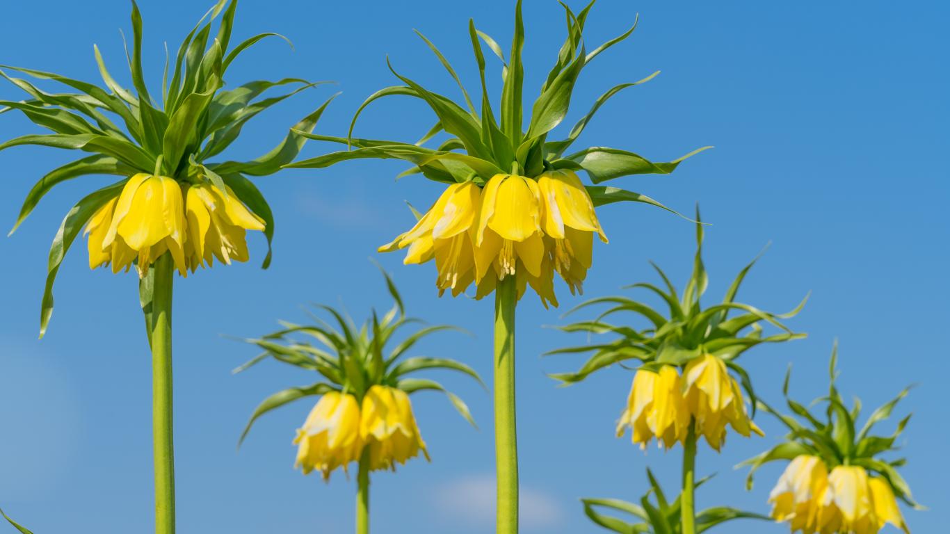 Wallpaper Yellow flowers hazel grouse on a background of blue sky