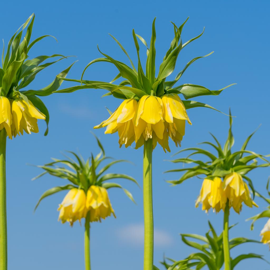 Wallpaper Yellow flowers hazel grouse on a background of blue sky