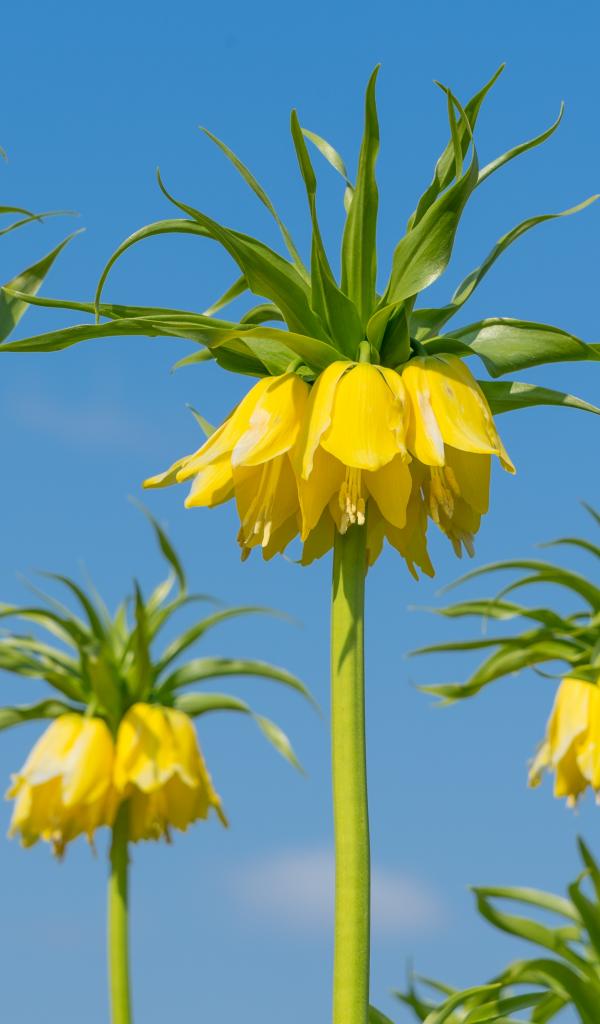Wallpaper Yellow flowers hazel grouse on a background of blue sky