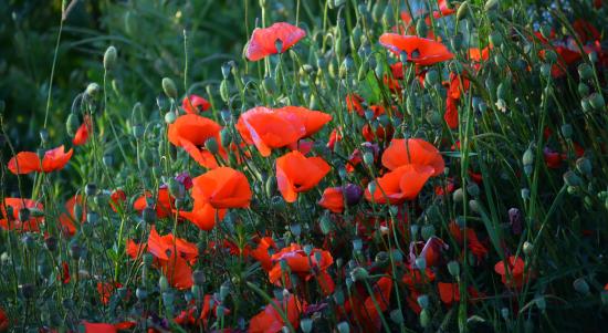 Wallpaper Red field poppies with buds in summer