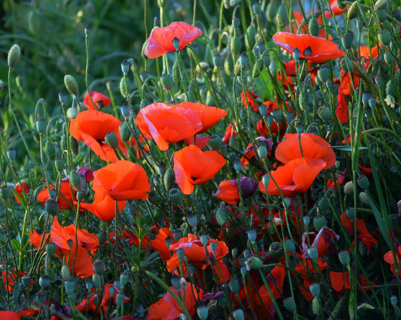 Wallpaper Red field poppies with buds in summer