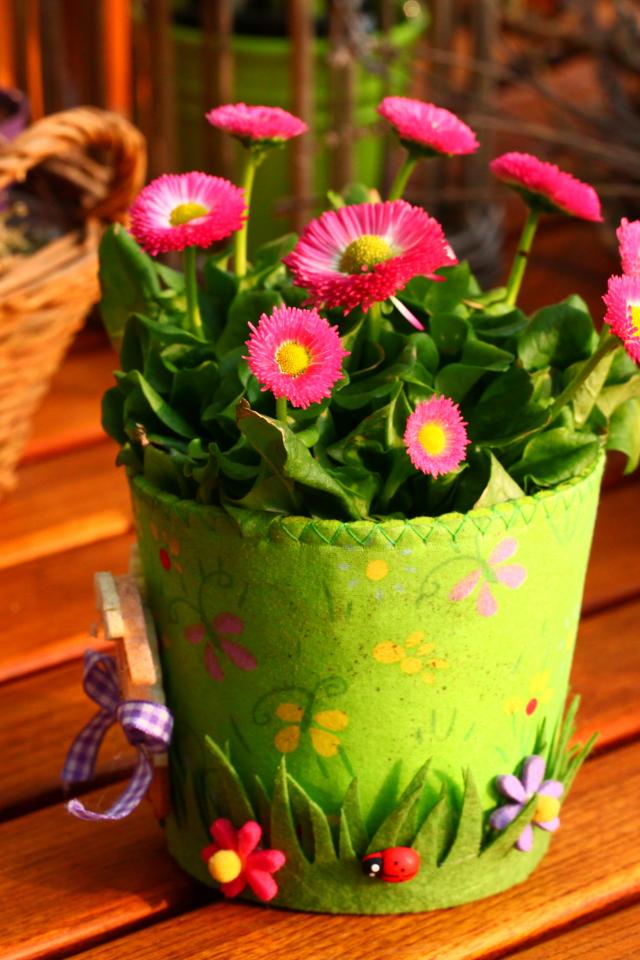 Wallpaper Pink daisies on the table in a green pot