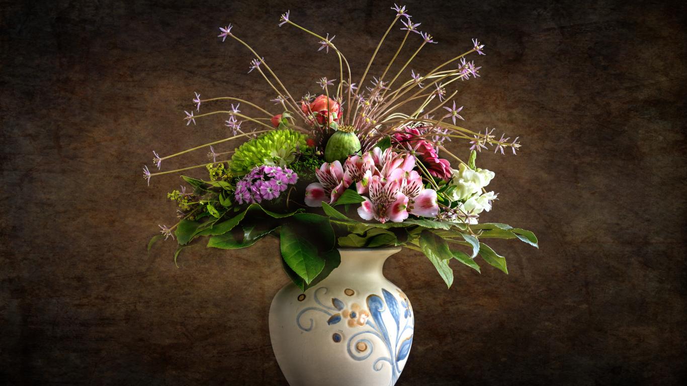 Wallpaper Cute bouquet in a beautiful vase on a wall background