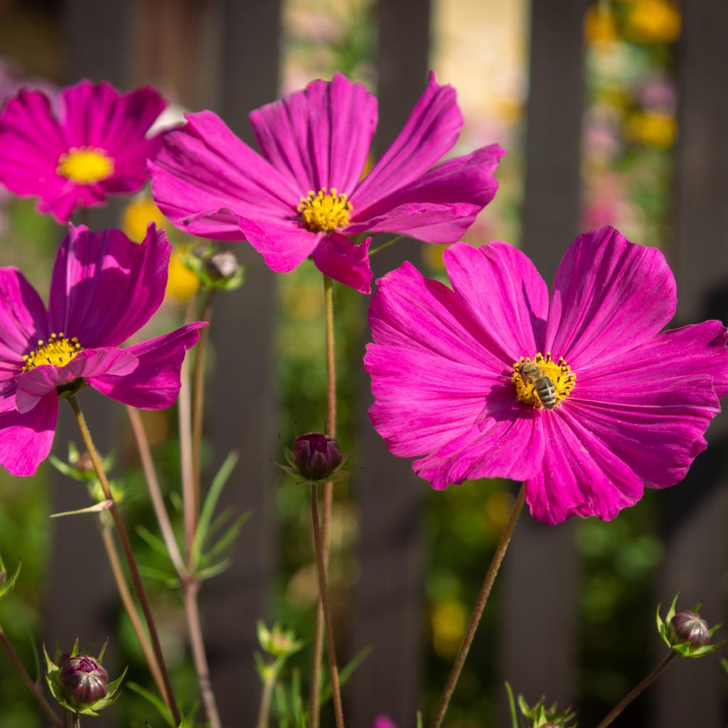Wallpaper Pink cosmos flowers with buds on a flower bed