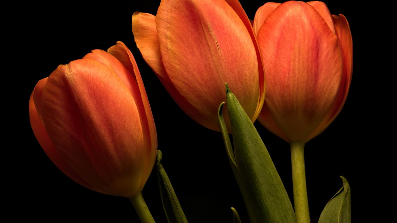 » Wallpaper Three orange tulips on a black background