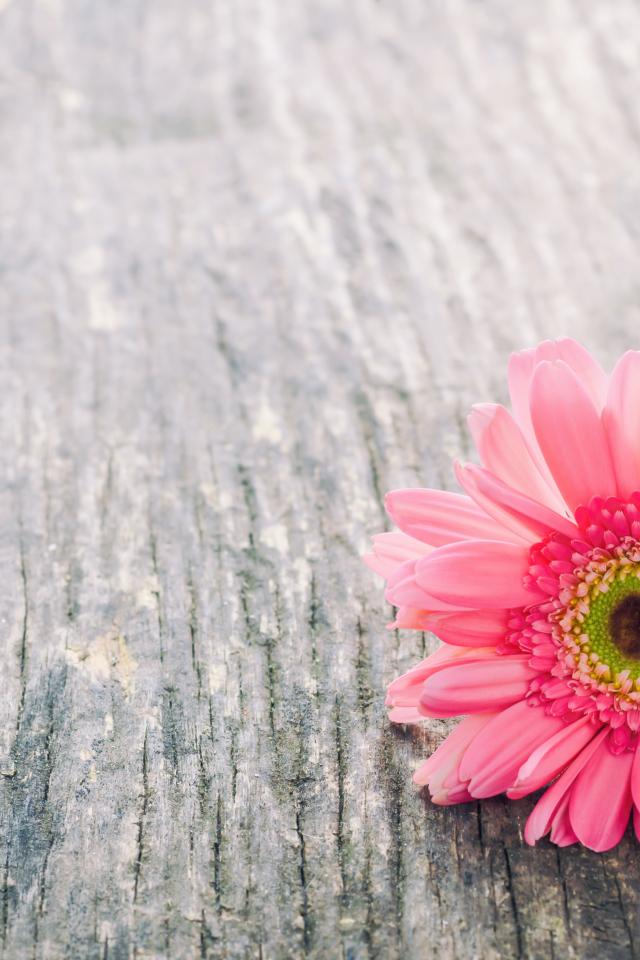 Wallpaper Lonely pink gerbera flower on gray table
