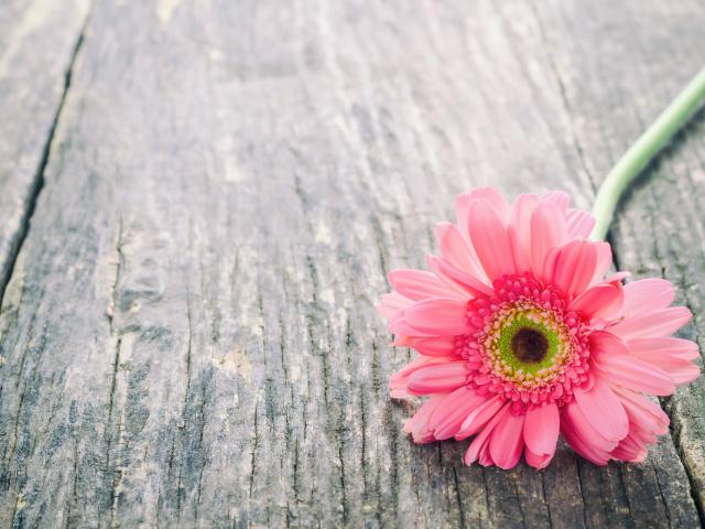 Wallpaper Lonely pink gerbera flower on gray table