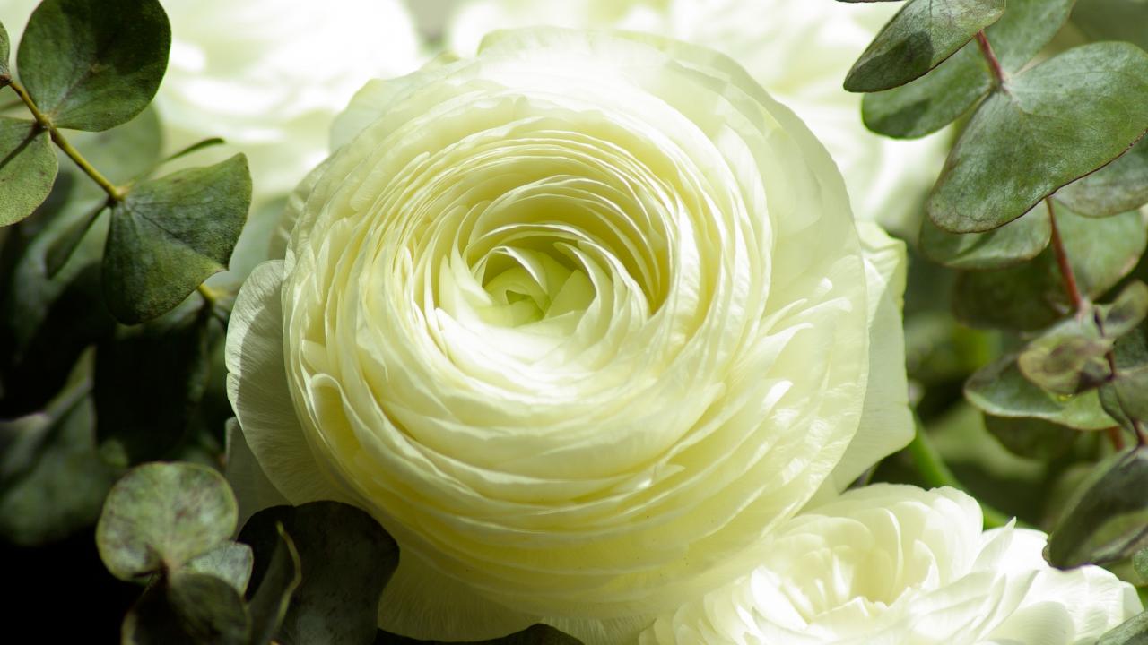 Wallpaper Two beautiful buttercup flowers in green leaves