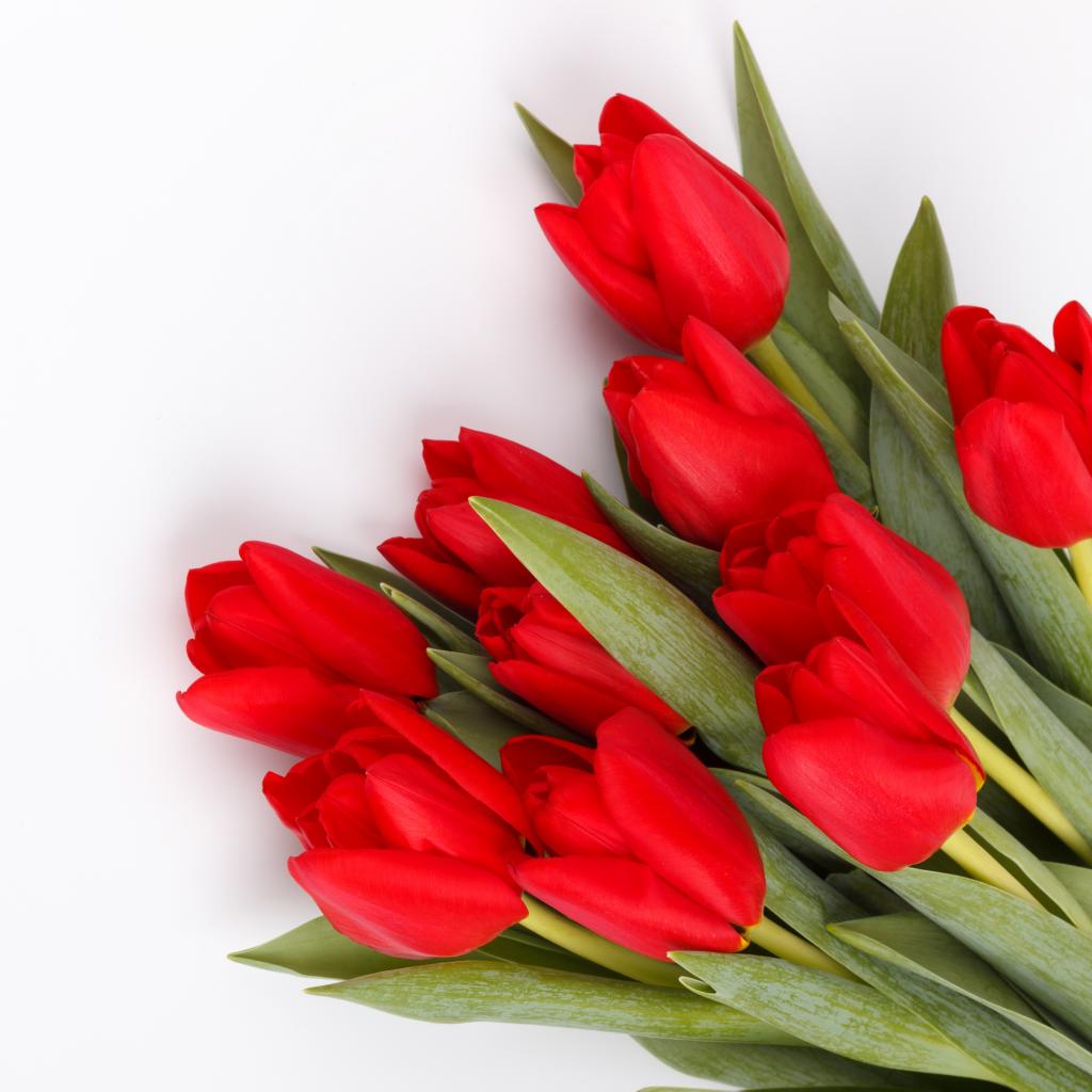 Wallpaper Beautiful bouquet of fresh red tulips on white background