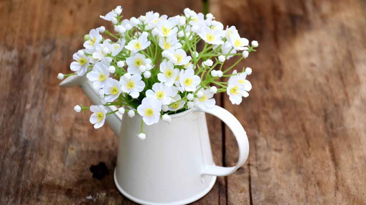 Wallpaper Small white flowers of gypsophila in a vase on the table
