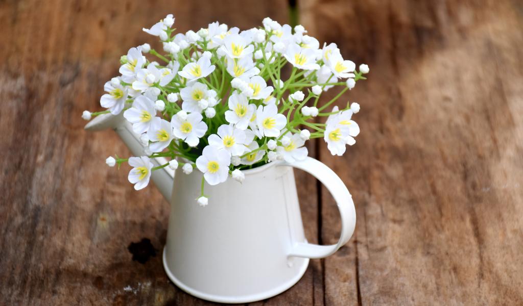 Wallpaper Small white flowers of gypsophila in a vase on the table