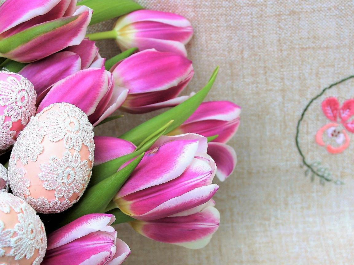 Wallpaper Lacy Easter eggs with tulips