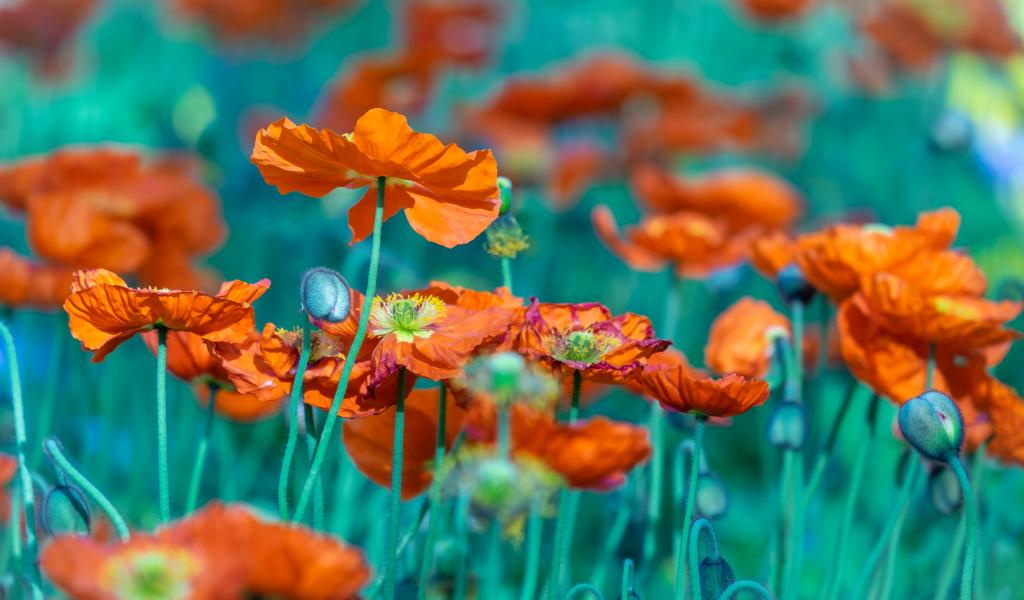 Wallpaper Many orange poppy flowers in the flowerbed