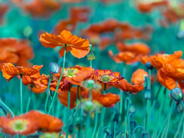 Wallpaper Many orange poppy flowers in the flowerbed