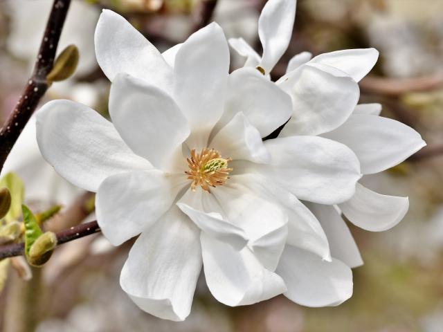 Wallpaper Delicate flowers of white magnolia on a branch
